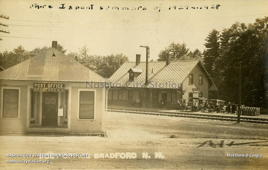 Postcard Post Office Bradford, New Hampshire Railroad History